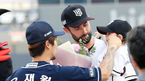 [OSEN=수원, 이동해 기자] 12일 오후 경기도 수원kt위즈파크에서 '2018 신한은행 MYCAR KBO리그' kt 위즈와 두산 베어스의 경기 시작 전 kt 니퍼트의 통산 100승-통산 1000탈삼진 달성 시상식이 열렸다.니퍼트가 시상식 후 양팀 더그아웃에
