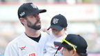[OSEN=수원, 이동해 기자] 12일 오후 경기도 수원kt위즈파크에서 '2018 신한은행 MYCAR KBO리그' kt 위즈와 두산 베어스의 경기 시작 전 kt 니퍼트의 통산 100승 시상식이 열렸다.니퍼트가 울먹이며 팬들에게 소감을 전하고 있다. / eastsea@