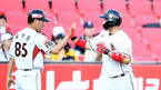 [OSEN=수원, 이동해 기자] 12일 오후 경기도 수원kt위즈파크에서 열린 '2018 신한은행 MYCAR KBO리그' kt 위즈와 두산 베어스의 경기, 1회말 kt 2사 박경수가 선취 솔로홈런을 뽑아낸 후 최태원 코치와 하이파이브를 하고 있다. / eastsea@osen