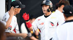 [OSEN=수원, 이동해 기자] 12일 오후 경기도 수원kt위즈파크에서 열린 '2018 신한은행 MYCAR KBO리그' kt 위즈와 두산 베어스의 경기, 1회말 kt 2사 박경수가 선취 솔로홈런을 뽑아낸 후 더그아웃에서 축하를 받고 있다. / eastsea@osen.co.kr