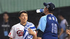 [OSEN=울산, 최규한 기자] 14일 오후 울산 문수야구장에서 '2018 신한은행 MYCAR KBO 올스타전'이 열렸다.5회말 종료 후 진행된 홈런레이스 결승전, 드림올스타 롯데 손아섭이 이대호에게 음료를 건네고 있다. /dreamer@osen.co.kr