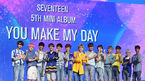 [OSEN=민경훈 기자] 16일 오후 서울 용산구 이태원로 블루스퀘어 아이메켓홀에서 세븐틴 컴백 쇼케이스 5집 미니앨범 '유 메이크 마이 데이(YOU MAKE MY DAY)'가 열렸다.세븐틴 멤버들이 무대 위에서 포토타임을 갖고 있다. / rumi@osen.co.k