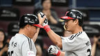 [OSEN=고척, 민경훈 기자] 17일 오후 서울 고척스카이돔서 열린 '2018 신한은행 MY CAR KBO 리그' 넥센 히어로즈와 LG 트윈스의 경기, 1회초 1사 주자 1루 LG 박용택이 우월 선취 투런 홈런을 날린 후 덕아웃에서 류중일 감독과 하이파이브