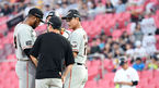 [OSEN=수원, 이동해 기자] 17일 오후 경기도 수원kt위즈파크에서 열린 '2018 신한은행 MYCAR KBO리그' kt 위즈와 한화 이글스의 경기, 1회말 2사 만루 위기에 한화 송진우 코치가 마운드에 올라 샘슨과 이야기 나누고 있다. / eastsea@osen.co.