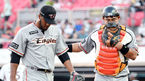 [OSEN=수원, 이동해 기자] 17일 오후 경기도 수원kt위즈파크에서 열린 '2018 신한은행 MYCAR KBO리그' kt 위즈와 한화 이글스의 경기, 1회말 2사 만루 위기에서 벗어난 한화 샘슨이 포수 지성준과 안도하며 더그아웃으로 향하고 있다. / ea