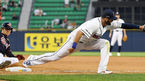 [OSEN=고척, 곽영래 기자] 18일 오후 서울 고척스카이돔에서 '2018 신한은행 MYCAR KBO리그' 넥센 히어로즈와 LG 트윈스의 경기가 열렸다.4회초 2사 1루 LG 정주현이 투수 앞 땅볼을 때린 뒤 송구 실책으로 2루까지 출루했다. / youngrae@osen.