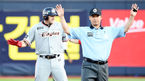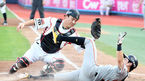 [OSEN=수원, 이동해 기자] 19일 오후 경기도 수원kt위즈파크에서 열린 '2018 신한은행 MYCAR KBO리그' kt 위즈와 한화 이글스의 경기, 1회초 1사 1,3루 한화 호잉 타석 때 더블 스틸 시도, 홈에서 태그아웃 당한 3루 주자 강경학이 아쉬워