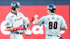 [OSEN=수원, 이동해 기자] 19일 오후 경기도 수원kt위즈파크에서 열린 '2018 신한은행 MYCAR KBO리그' kt 위즈와 한화 이글스의 경기, 1회초 2사 2루 한화 호잉이 1타점 적시타를 뽑아낸 후 고동진 코치와 하이파이브를 하고 있다. / eastsea
