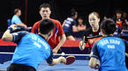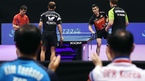 [OSEN=대전, 이동해 기자] 19일 대전 충무체육관에서 열린 '2018 국제탁구연맹 월드투어 코리아오픈' 혼합복식 16강전에서 최일-유은총 조(남북 단일팀)이 이상수-전지희 조(한국)에 세트스코어 1:3 패했다.양팀 선수들이 경기에 임