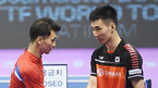 [OSEN=대전, 이동해 기자] 19일 오후 대전 충무체육관에서 열린 '2018 국제탁구연맹 월드투어 코리아오픈' 남자복식 16강전에서 한국 이상수-북한 박신혁(남북 단일팀)이 3:0 완승을 거뒀다.'남북 단일팀' 이상수-박신혁이 경기에 임