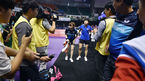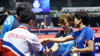 [OSEN=대전, 이동해 기자] 19일 오후 대전 충무체육관에서 열린 '2018 국제탁구연맹 월드투어 코리아오픈' 여자복식 16강전에서 서효원-김송이 조(남북 단일팀)가 중국 대표팀에 세트스코어 2:3으로 석패했다.'남북 단일팀' 서효원-