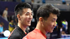 [OSEN=대전, 이대선 기자] 20일 대전 충무체육관에서 '2018 국제탁구연맹 월드투어 코리아오픈'이 열렸다.남북 단일팀 한국 이상수와 북한 박신혁이 남자복식 8강전 중국과의 경기에서 환호하고 있다./ sunday@osen.co.kr