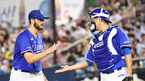 [OSEN=잠실, 곽영래 기자] 25일 오후 서울 잠실야구장에서 '2018 신한은행 MYCAR KBO리그' LG 트윈스와 삼성 라이온즈의 경기가 열렸다.5회말 이닝을 마친 삼성 아델만과 강민호가 인사를 나누고 있다. / youngrae@osen.co.kr
