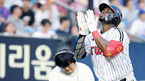 [OSEN=잠실, 이동해 기자] 26일 오후 서울 잠실야구장에서 열린 '2018 신한은행 MYCAR KBO리그' LG 트윈스와 삼성 라이온즈의 경기, 3회말 2사 2,3루 LG 가르시아가 스리런홈런을 때린 후 김현수와 기쁨을 나누고 있다. / eastsea@osen.co.kr