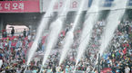 [OSEN=수원, 이동해 기자] 27일 오후 경기도 수원kt위즈파크에서 열린 '2018 신한은행 MYCAR KBO리그' kt 위즈와 LG 트윈스의 경기, 4회말 2사 2,3루 kt 황재균의 스리런 홈런에 kt 팬들이 5G 워터페스티벌 이벤트를 즐기고 있다. / eastsea@osen.c