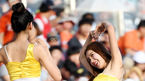 [OSEN=잠실, 민경훈 기자] 29일 오후 서울 잠실구장에서 열린 '2018 신한은행 MY CAR KBO 리그' 두산 베어스와 한화 이글스의 경기, 한화 치어리더 조연주과 김연정이 화려한 공연을 펼치고 있다./ rumi@osen.co.kr