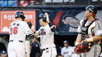 [OSEN=잠실, 곽영래 기자] 31일 오후 서울 잠실야구장에서 '2018 신한은행 MYCAR KBO리그' 두산 베어스와 LG 트윈스의 경기가 열렸다.1회초 2사 만루 두산 유희관이 LG 채은성을 포수 앞 땅볼로 처리한 뒤 양의지에게 인사를 하고 있다. /