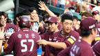 [OSEN=수원, 박재만 기자] 5일 오후 경기도 수원kt위즈파크에서 '2018 신한은행 MY CAR KBO리그' kt 위즈와 넥센 히어로즈의 경기가 열렸다.1회초 1사 1,3루 넥센 송성문이 적시타를 날린 뒤 원팀 세리머니를 하고 있다. /pjmpp@osen.co.kr