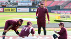 [OSEN=수원, 박재만 기자] 5일 오후 경기도 수원kt위즈파크에서 '2018 신한은행 MY CAR KBO리그' kt 위즈와 넥센 히어로즈의 경기가 열린다.넥센 나이트 코치, 초이스, 해커, 박병호가 대화를 나누고 있다. /pjmpp@osen.co.kr