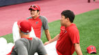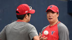 [OSEN=고척, 최규한 기자] 7일 오후 고척 스카이돔에서 열리는 '2018 신한은행 MY CAR KBO리그' 넥센 히어로즈와 KIA 타이거즈의 경기를 앞두고, KIA 윤석민과 홍건희가 훈련을 앞두고 대화를 나누고 있다. /dreamer@osen.co.kr