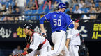 [OSEN=잠실, 이동해 기자] 9일 오후 서울 잠실야구장에서 열린 '2018 신한은행 MYCAR KBO리그' LG 트윈스와 삼성 라이온즈의 경기, 6회초 무사 3루 삼성 김헌곤의 1타점 희생플라이에 3루에 있던 러프가 동점 득점 성공하고 있다. / eastsea@