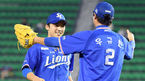 [OSEN=잠실, 이동해 기자] 9일 오후 서울 잠실야구장에서 열린 '2018 신한은행 MYCAR KBO리그' LG 트윈스와 삼성 라이온즈의 경기, 6회말 삼성 우규민이 호수비를 선보인 박해민과 포옹을 나누고 있다. / eastsea@osen.co.kr
