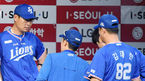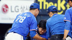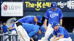 [OSEN=잠실, 이동해 기자] 10일 오후 서울 잠실야구장에서 열린 '2018 신한은행 MYCAR KBO리그' LG 트윈스와 삼성 라이온즈의 경기, 3회초 삼성 김한수 감독이 의료진에게 이원석의 상태를 물어보고 있다. 상황은 1사 1,2루 삼성 김헌곤