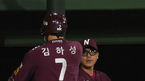 [OSEN=청주, 최규한 기자] 10일 오후 충북 청주구장에서 '2018 신한은행 MY CAR KBO리그' 한화 이글스와 넥센 히어로즈의 경기가 열렸다.9회초 무사 1루 상황 넥센 김하성이 달아나는 좌월 투런포를 날리고 장정석 감독과 인사를 나누