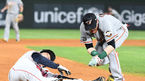 [OSEN=부산, 지형준 기자] 14일 오후 부산 사직야구장에서 열린 '2018 신한은행 MYCAR KBO리그' 롯데 자이언츠와 한화 이글스의 경기, 4회말 1사 1루에서 롯데 민병헌이 신본기의 우전안타에 한화 김회성의 태그에 앞서 3루에서 세이프