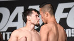 [OSEN=곽영래 기자] 'ROAD FC 049' 공식계체량이 17일 오후 서울 광진구 비스타 워커힐 서울에서 열렸다.중국 황젠유에와 태국 티라윳 카오랏이 신경전을 펼치고 있다. / youngrae@osen.co.kr