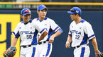 [OSEN=잠실, 박준형 기자]2018 자카르타·팔렘방 아시안게임 출전하는 한국 야구대표팀이 21일 오후 서울 잠실야구장에서 훈련을 가졌다.박해민과 이정후, 김재환이 이야기를 나누고 있다./ soul1014@osen.co.kr