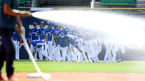 [OSEN=잠실, 최규한 기자] 2018 자카르타·팔렘방 아시안게임에 출전하는 한국 야구대표팀이 22일 오후 서울 잠실야구장에서 훈련을 가졌다.대표팀 선수들이 외야에서 몸을 푸는 가운데 야구장 관리 요원들이 그라운드에 물을