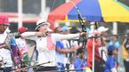 [OSEN=자카르타(인도네시아), 이대선 기자] 23일 오전 인도네시아 자카르타 겔로라 붕 카르노(GBK) 양궁장에서 2018 자카르타-팔렘방 아시안게임 양궁 여자 리커브 개인전 16강전이 열렸다.한국 강채영이 과녁을 확인하고 돌아오고