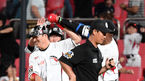 [OSEN=수원, 지형준 기자] 4일 오후 수원케이티위즈파크에서 열린 '2018 신한은행 MYCAR KBO리그' KT 위즈와 LG 트윈스의 경기, 6회말 2사 1,2루 투수교체에 KT 황재균과 LG 오지환이 이야기를 나누고 있다. /jpnews@osen.co.kr