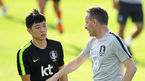 [OSEN=파주, 최규한 기자] 파울루 벤투 감독이 이끄는 대한민국 남자 축구대표팀 소집훈련이 3일 오후 경기도 파주 국가대표트레이닝센터(NFC)에서 열렸다.벤투 감독과 손흥민이 미니게임 훈련 중 미소짓고 있다. /dreamer@osen.co.kr