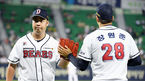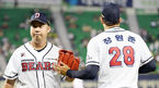 [OSEN=잠실, 이동해 기자] 5일 오후 서울 잠실야구장에서 열린 '2018 신한은행 MYCAR KBO리그' 두산 베어스와 KIA 타이거즈의 경기, 7회초 1사 만루 위기 상황 두산 유희관이 강판되며 장원준과 하이파이브 하고 있다. 장원준 등판. / east