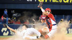 [OSEN=잠실, 이동해 기자] 5일 오후 서울 잠실야구장에서 열린 '2018 신한은행 MYCAR KBO리그' 두산 베어스와 KIA 타이거즈의 경기, 6회말 1사 1,3루 두산 조수행의 내야땅볼 때 3루 주자 오재일이 홈 승부를 걸고 있다. 이에김태형 감독이