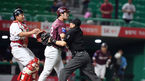 [OSEN=인천, 곽영래 기자] 5일 오후 인천 SK행복드림구장에서 '2018 신한은행 MYCAR KBO리그' SK 와이번스와 넥센 히어로즈의 경기가 열렸다.9회초 1사 넥센 박병호가 SK 정영일에게 사구를 맞은 뒤 신경전을 벌이고 있다. / youngrae@osen.co.
