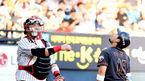 [OSEN=고척, 최규한 기자] 8일 오후 고척 스카이돔에서 '2018 신한은행 MY CAR KBO리그' 넥센 히어로즈와 kt 위즈의 경기가 열렸다.2회초 1사 주자없는 상황 kt 이해창이 추격의 우월 솔로포를 날리고 홈을 밟으며 고영민 코치와 인사를