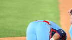 [OSEN=부산, 이동해 기자] 11일 오후 부산 사직야구장에서에서 '신한은행 MYCAR KBO리그' 롯데 자이언츠와 두산 베어스의 경기가 열렸다.8회말 1사 롯데 허일이 내야땅볼 타구를 때린 후 1루를 향하던 중 고통을 호소하며 바닥에 주저