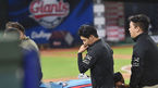 [OSEN=부산, 이동해 기자] 11일 오후 부산 사직야구장에서에서 '신한은행 MYCAR KBO리그' 롯데 자이언츠와 두산 베어스의 경기가 열렸다.8회말 롯데 허일이 들것에 실려 경기장을 빠져나가고 있다. 상황은 1아웃허일이 내야땅볼 타구
