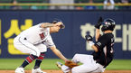 [OSEN=잠실, 곽영래 기자] 13일 오후 서울 잠실야구장에서 '2018 신한은행 MYCAR KBO리그' 두산 베어스와 kt 위즈의 경기가 열렸다.1회초 1사 두산 오재원이 2루 도루를 시도하는 kt 오태곤을 아웃시키고 있다. / youngrae@osen.co.kr