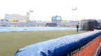 [OSEN=창원, 이동해 기자] 13일 오후 경남 창원 마산야구장에서 열릴 예정인 '신한은행 MYCAR KBO리그' NC 다이노스와 넥센 히어로즈의 경기에 앞서 추적추적 내리는 비에 대형방수포가 그라운드에 깔려 있다. / eastsea@osen.co.kr