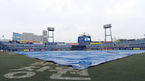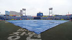 [OSEN=창원, 이동해 기자] 13일 오후 경남 창원 마산야구장에서 열릴 예정인 '신한은행 MYCAR KBO리그' NC 다이노스와 넥센 히어로즈의 경기에 앞서 추적추적 내리는 비에 대형방수포가 그라운드에 깔려 있다. / eastsea@osen.co.kr