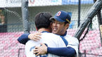 [OSEN=잠실, 지형준 기자] 15일 오후 서울 잠실야구장에서 열린 '2018 신한은행 MYCAR KBO리그' 두산 베어스와 NC 다이노스의 경기, 두산 조성환 코치가 NC 이우성과 인사를 나누고 있다. /jpnews@osen.co.kr