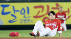 [OSEN=대전, 이동해 기자] 22일 오후 대전 한화생명이글스파크에서 '2018 신한은행 MY CAR KBO리그' 한화 이글스와 기아 타이거즈의 경기가 열렸다.8회말 1사 만루 KIA 투수 교체 때 유격수 김선빈-좌익수 최형우가 앉아 쉬고 있다. / east