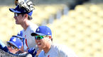 [OSEN=로스앤젤레스(美 캘리포니아주) 최규한 기자] 23일(한국시간) 미국 캘리포니아주 로스앤젤레스 다저스타디움에서 열리는 '2018 메이저리그(MLB)' LA 다저스와 샌디에이고 파드레스의 경기를 앞두고, 다저스 투수 류현진이 동료