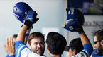 [OSEN=대구, 이동해 기자] 23일 오후 대구 삼성라이온즈파크에서 열린 '2018 신한은행 MY CAR KBO리그' 삼성 라이온즈와 롯데 자이언츠의 경기, 8회말 1사 2루 삼성 러프의 투런홈런에 구자욱이 더그아웃에서 팀원들에게 축하를 받고