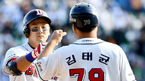 [OSEN=잠실, 박재만 기자] 25일 오후 서울 잠실야구장에서 ‘2018 신한은행 MY CAR KBO리그’ 두산 베어스와 넥센 히어로즈의 경기가 열렸다.7회말 무사 1,3루 두산 최주환이 적시타를 날린 뒤 김태균 코치와 하이파이브를 하고