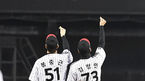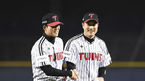 [OSEN=잠실,박준형 기자] 28일 오후 서울 잠실구장에서 진행된 '2018 신한은행 MY CAR KBO리그' LG 트윈스와 KIA 타이거즈의 경기에 앞서 LG 봉중근이 시구를 마친뒤 김정민 코치와 세리머니를 하고 있다. / soul1014@osen.co.kr